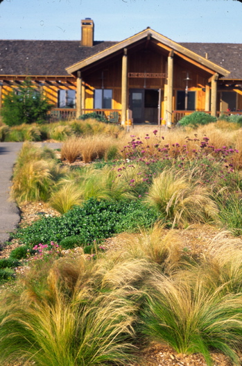 We removed the old lawn and replaced it with native grasses and shrubs and perennial herbs.